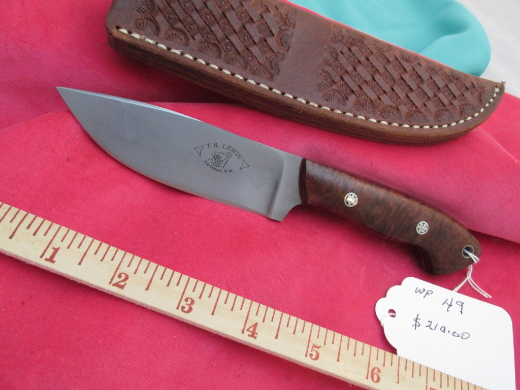 26c3 steel with a clay tempered hamon. Handle is stabilized red malee burl. $210