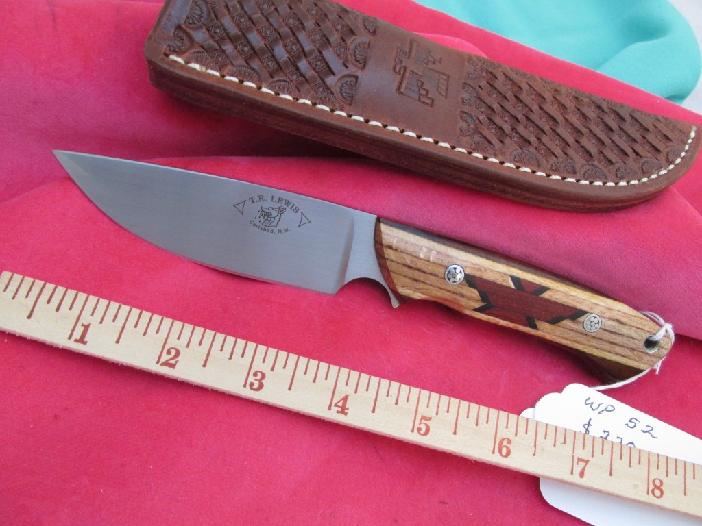 Damascus blade of wire rope or wire cable. Handle is sidua wood. $350